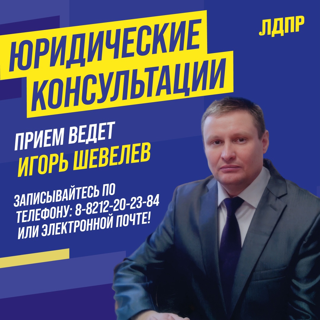 Вы оказались в сложной жизненной ситуации? Не знаете, куда обратиться? Юрист Коми регионального отделения ЛДПР Шевелёв Игорь Васильевич готов на ответить на ваши вопросы и помочь найти выход из трудного положения.