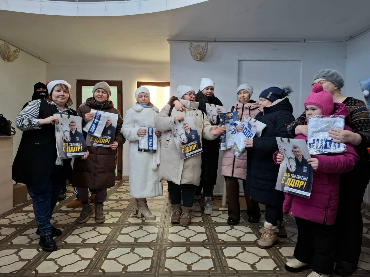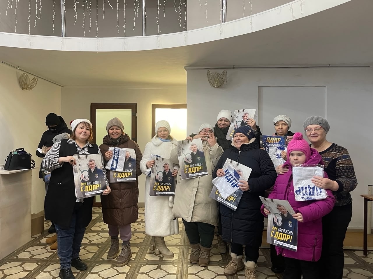 Дети получили сладкие подарки, а активист партии ЛДПР Наталия Зиновьева поздравила с Рождеством родителей и вручила партийные футболки и новогодний выпуск газеты ЛДПР.