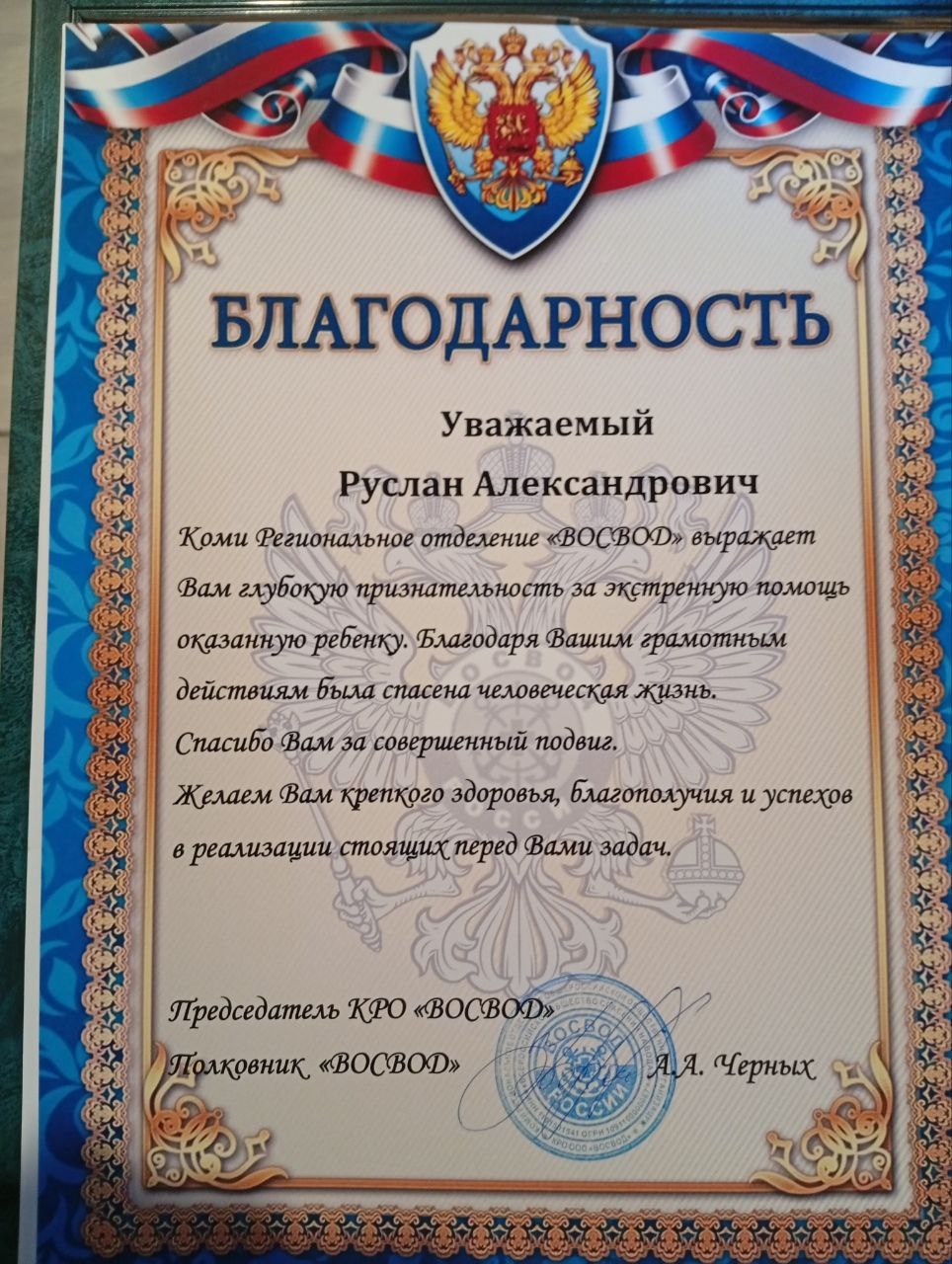 Коми региональное отделение ЛДПР выражает отдельные слова благодарности Руслана, Веронике Пыстиной - координатору первичного Ухтинского отделения ЛДПР. Отзывчивость, смелость и человечность - эти качества воспитала она в своем сыне на собственном примере.