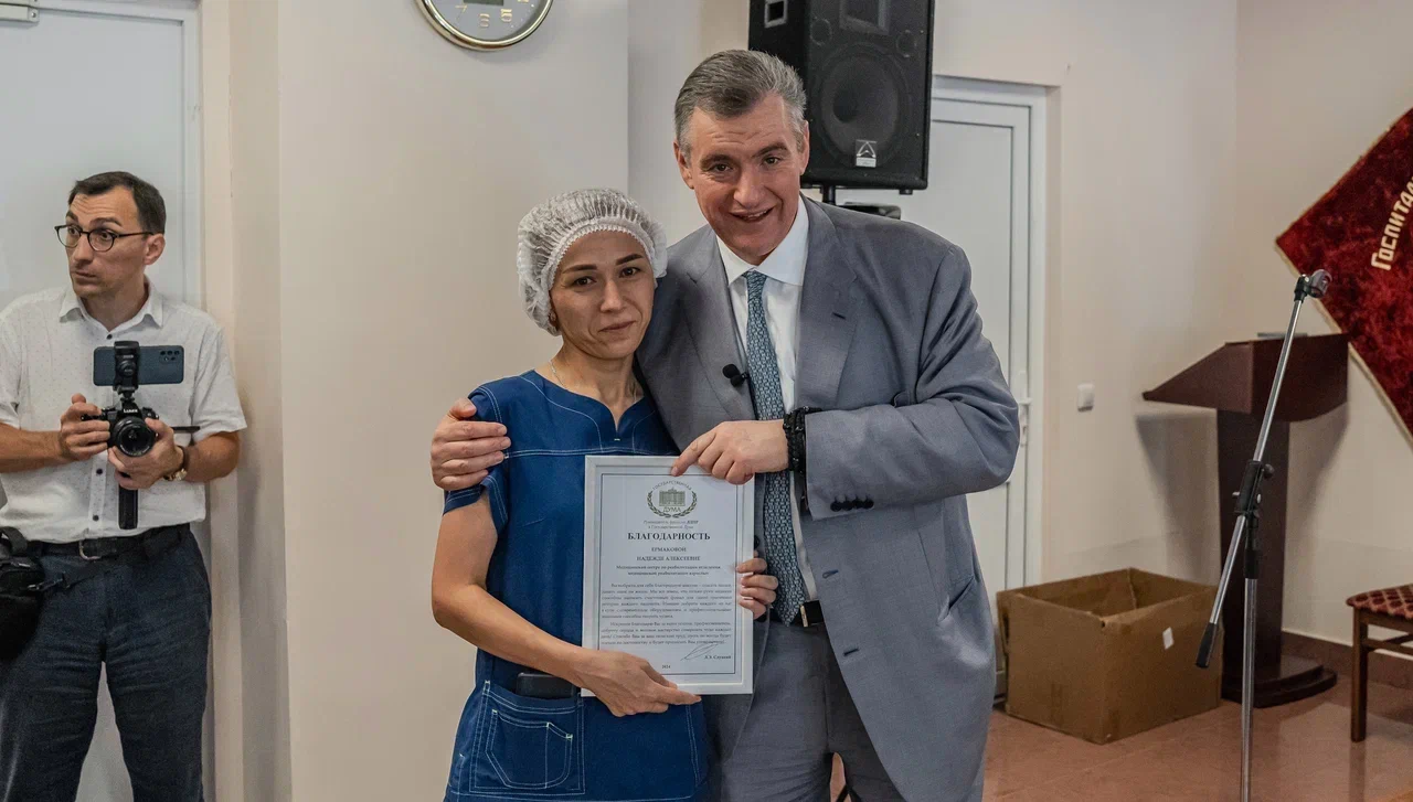 Лидер ЛДПР лично вручил грамоты с благодарностью отличившимся медикам госпиталя, поблагодарив их за самоотверженный труд и помощь в восстановлении бойцов.